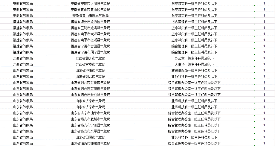 中国气象局及其直属机构计划招录265人。其中,中国气象局机关招录4人,中国气象局系统参照公务员法管理事业单位招录261人。